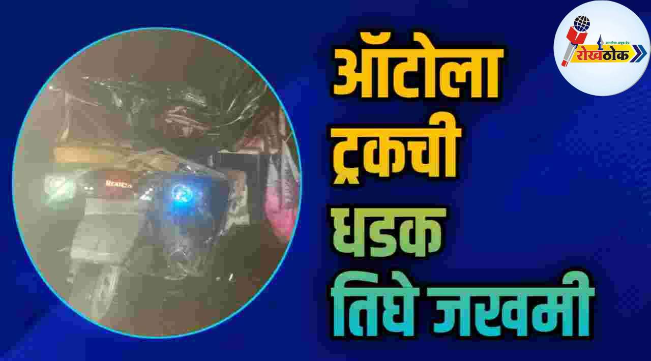 नांदेपेरा मार्गावरील मांगल्य बिअरबार जवळ शनिवारी रात्री 9:30 वाजताच्या दरम्यान चढावरून समोर जात असलेला ट्रक मागे आला आणि ऑटोला धडकला. या अपघातात ऑटोचा पूर्णतः चेंदामेंदा झाला आहे. ऑटोतील तीन प्रवाशी जखमी झाले आहे. घटनास्थळी पोलीस पोहचले असून जखमींना ग्रामीण रुग्णालयात उपचारार्थ हलविण्यात आले आहे. Three passengers in the auto were injured.